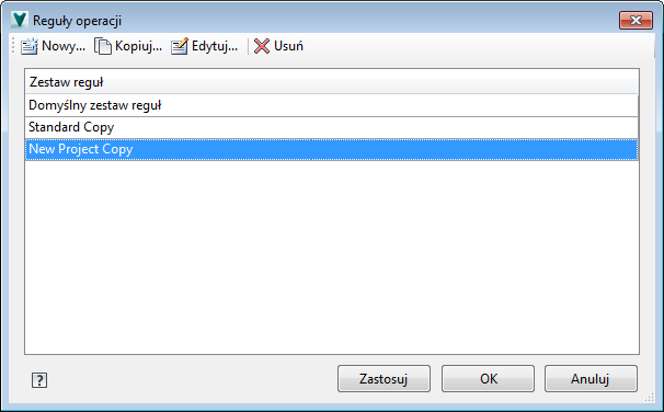 - Wybierz istniejący zestaw reguł i kliknij przycisk Kopiuj. Nowy zestaw reguł jest tworzony z zastosowaniem takich samych warunków i ustawień jak źródłowy zestaw reguł. Wybierz kopię i kliknij przycisk Edytuj, aby wprowadzić zmiany.