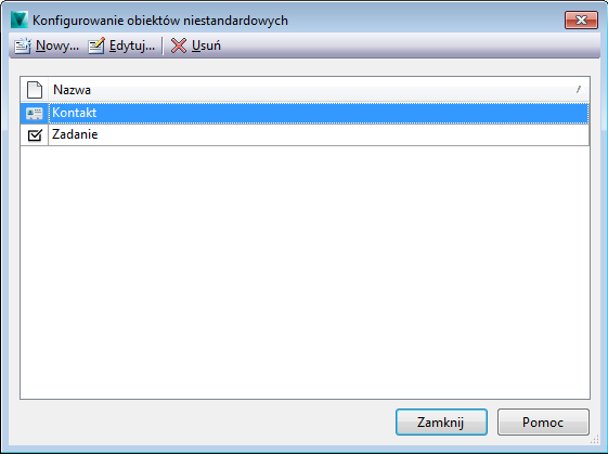 - Kliknij przycisk Konfiguracja, aby otworzyć okno dialogowe Konfigurowanie obiektów niestandardowych.