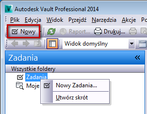 W poniższym przykładzie użytkownik tworzy nowe Zadanie.