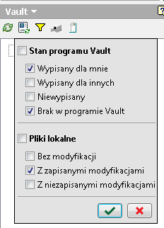 Pliki wyświetlane w przeglądarce programu Vault można filtrować, korzystając z menu Filtr.