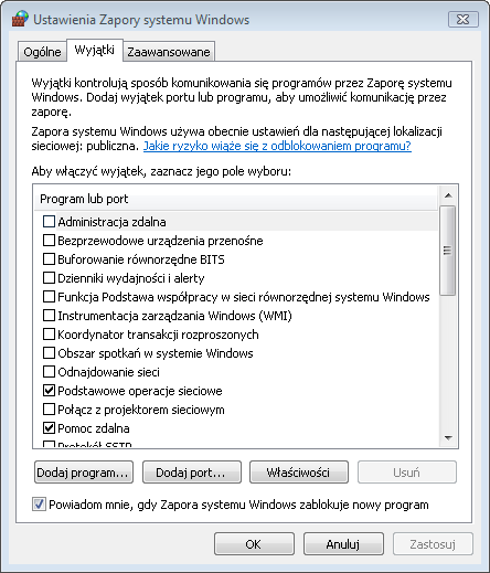 - Na karcie Wyjątki sprawdź, czy domyślny port sieci WWW jest wymieniony na liście programów i usług nieblokowanych przez zaporę. Jeśli nie jest wymieniony, kliknij przycisk Dodaj port.