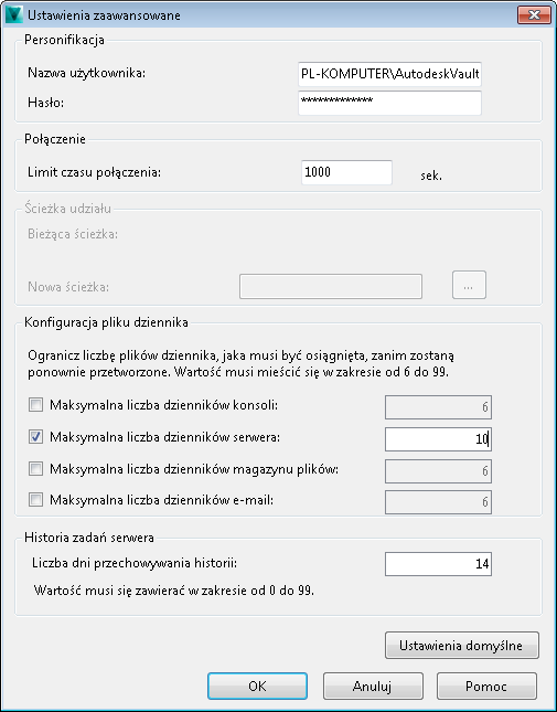 Zaawansowane ustawienia serwera Vault