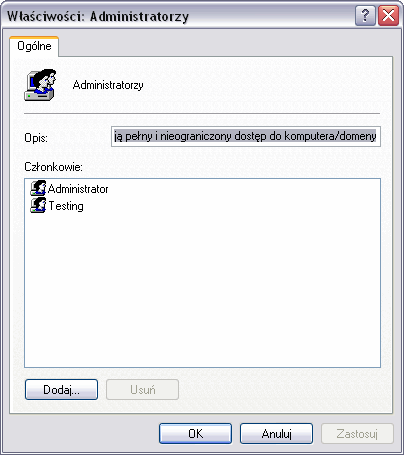 Dodawanie konta do grupy Administratorzy systemu Windows