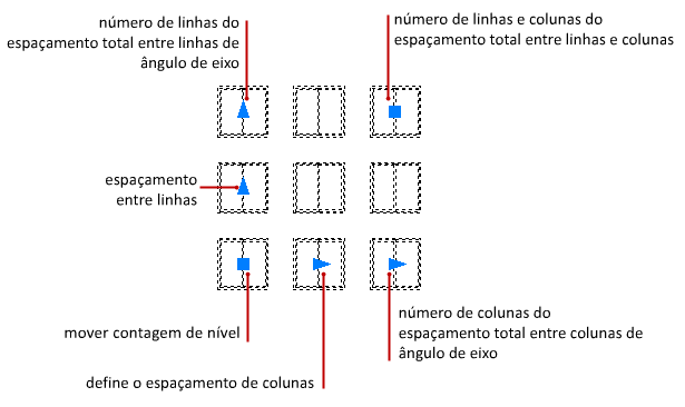 Ao arrastar a matriz de alças, é possível aumentar ou diminuir o número e o espaçamento de linhas e colunas da matriz.