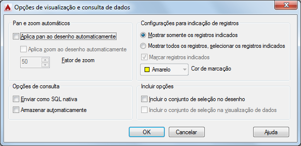 Controla como os objetos vinculados serão exibidos no desenho atual quando os registros correspondentes são selecionados na janela Visualizar dados.