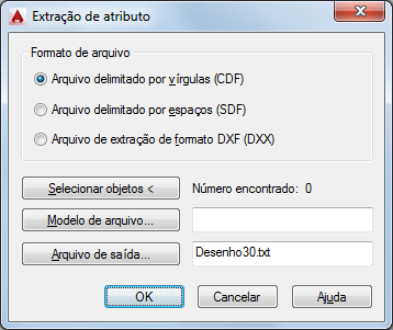 Gera um arquivo contendo um registro para cada referência de bloco do desenho que tenha pelo menos um identificador de atributo correspondente no modelo de arquivo. Os campos de cada registro possuem largura fixa; portanto, separadores de campos ou delimitadores de sequência de caracteres não são apropriados.