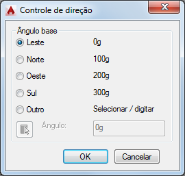 Configura a direção do ângulo zero. As opções a seguir afetam a entrada de ângulos, o formato de exibição e a entrada de coordenadas polares, cilíndricas e esféricas.