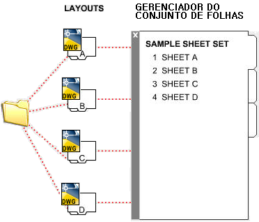 Você pode gerenciar múltiplos desenhos na forma de conjuntos de folhas com o Gerenciador de conjunto de folhas: