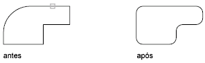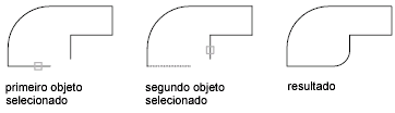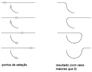 Se você selecionar linhas, arcos ou polilinhas, seus tamanhos se ajustam para acomodar o arco em concordância. Você pode manter pressionado a tecla Shift enquanto seleciona os objetos para substituir o raio de concordância corrente com um valor de 0.