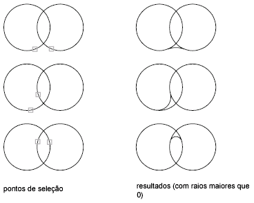 Pode haver mais de uma concordância entre arcos e círculos. Selecione os objetos próximos de onde você deseja as extremidades da concordância.