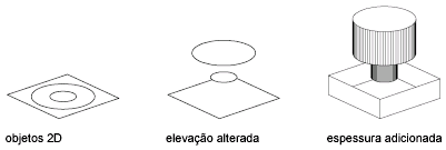 A orientação do UCS quando o objeto foi criado, determina a direção Z . Os objetos com espessura diferente de zero podem ser sombreados e podem ocultar outros objetos atrás de si.