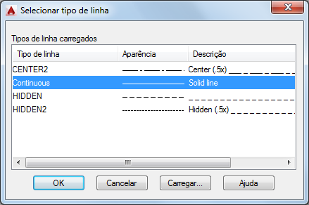 Exibe a caixa de diálogo Carregar ou recarregar tipos de linha, onde é possível carregar tipos de linha selecionados no desenho e adicioná-los à lista de tipos de linha.