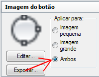 No painel Imagem de botão, em Aplicar para, selecione uma das três opções de atribuição de imagem; Imagem pequena, Imagem grande ou Ambas.