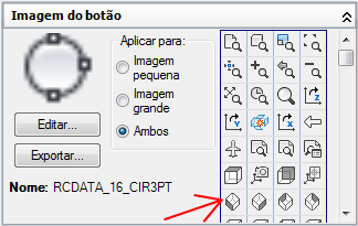 No painel Imagem de botão, em Aplicar para, selecione uma das três opções de atribuição de imagem; Imagem pequena, Imagem grande ou Ambas. A seguir selecione a imagem importada da lista de imagens.