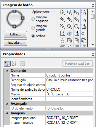 Selecione uma imagem na lista. O nome da imagem será atribuído à propriedade Imagem Pequena, à propriedade Imagem grande ou a ambas as propriedades do comando selecionado.