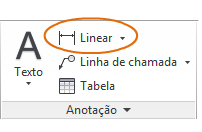 Você pode criar cotas horizontais e verticais com o comando COTALINEAR. Observe que o botão é uma lista suspensa que inclui os comandos de cota mais comuns.
