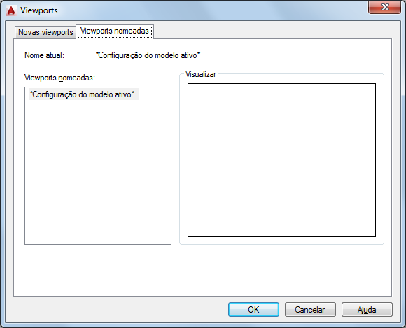 Guias para viewports espaço do modelo: Novas Viewports—Espaço do Modelo, Viewports Nomeadas—Espaço do Modelo