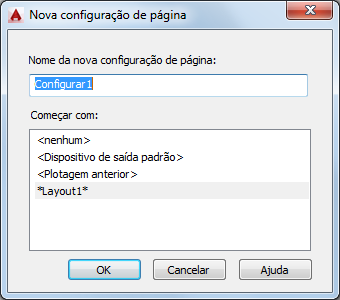 Especifica uma configuração de página para usar inicialmente para Nova configuração de página. Quando você clicar em OK, a caixa de diálogo Configuração da página é exibida com os ajustes da configuração de página selecionada, que pode ser alterada conforme necessário.