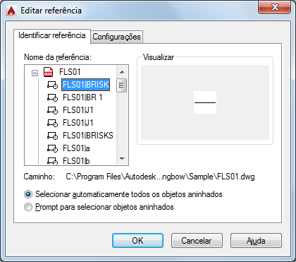 A imagem de visualização prévia exibirá a referência conforme apresentada na última vez em que foi salva no desenho. A imagem de visualização prévia da referência não será atualizada quando as alterações forem salvas de volta na referência.