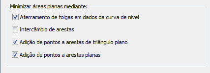 Quando você adiciona curva de nível à definição de superfície, a caixa de diálogo adicionar dados da curva de nível inclui configurações padrão para minimizar área plana, como é mostrado na imagem 6.