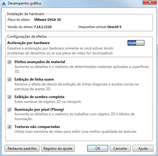 Você também pode usar o comando -GRAPHICSCONFIG na linha de comando para acessar a mais opções. Para obter mais informações, consulte a Ajuda do AutoCAD.