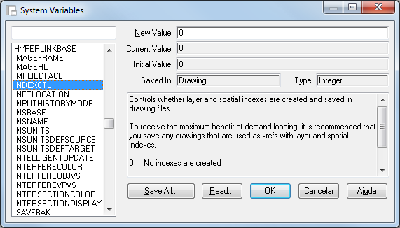 Entre mais de 500 variáveis de sistema que controlam o comportamento do AutoCAD, há diversas que você pode usar para melhorar o gerenciamento de grandes conjuntos de dados. Esta seção explica primeiro como acessar o Editor de variável de sistema e, a seguir, fornece informações de plano de fundo e ajustes recomendados para uma determinada variável.