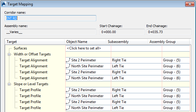 Para este exemplo, clique no botão Alvos para Região (1). A caixa de diálogo Mapeamento de alvo será exibida, como mostrado na figura 33. Observe os objetos que são referenciados como alvos.