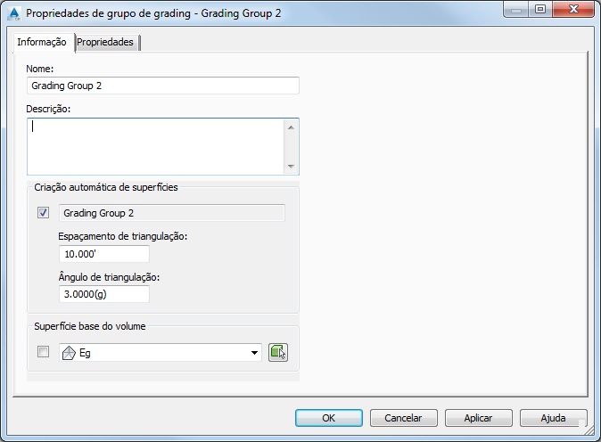 Para fixar a triangulação do arco, é preciso definir um maior valor para o espaçamento de suavização no grupo de nivelamento. Como mostrado na imagem 26, esta pode ser difícil de localizar na caixa de diálogo Propriedades de grupo de nivelamento, porque ela pode ser definida somente se a criação automática de superfície é ativada. No entanto, esta configuração também é usada para criar uma superfície separada de comando e nivelamento de preenchimento de triangulação. A melhor solução neste ponto é ativa a Criação automática de superfície, mudando a suavização de espaçamento para o valor padrão de 10 pés para 1 pé, então desativar Criação automática de superfície novamente. Você precisa clicar em aplicar depois de ativar Criação automática de superfície na ordem de aplicação da alteração de configurações.