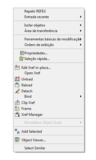 - Selecione e clique com o botão direito nos lotes refex e observe os comandos refex que estão disponíveis.