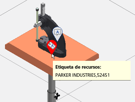 Os identificadores de recursos podem ser criados em recursos fixos e em modelos e conjuntos importados, em um layout do Inventor Factory. Para criar um identificador de recurso, realize as etapas a seguir.