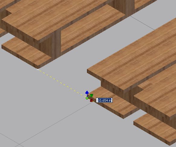 A opção De acordo com o piso é usada junto com a opção Mover tríade. Esta opção força a tríade para baixo até o nível de piso, de modo que o componente permaneça fixo no piso à medida que é arrastado. A opção De acordo com o piso está ativada por padrão, mas ela pode ser desativada usando o pop-up do menu de contexto do comando Reposicionar.