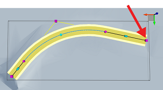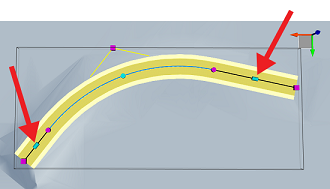| O ponto de tangência altera o ponto inicial ou final de uma curva. Este manipulador também afeta o comprimento da curva e o raio. |