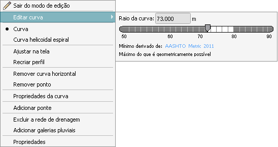 Nota: Os valores do raio que são geometricamente possíveis para a curva são exibidos no contínuo. Se um valor que está fora da faixa de solução for inserido, será exibida uma mensagem de aviso.