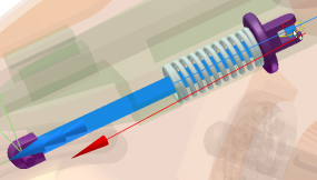 - Expanda o nó Cargas no navegador. Há muitas forças envolvidas no funcionamento dos componentes. Estas forças também são exibidas na região gráfica. É possível suprimir as forças que não deseja ativas na simulação. Para ver o impacto de uma força concreta, suprima as demais.
