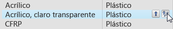 - Selecione o material em um destes dois locais no Navegador de materiais, e use o controle que aparece à direita do material: