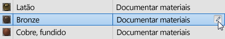 - Para renomear um material, clique com o botão direito do mouse no documento lista de materiais e clique em Renomear.