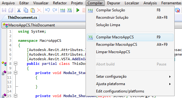 - No IDE de macros do Revit, selecione a opção específica da macro na lista suspensa Build.