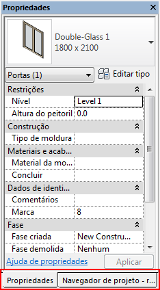 Um grupo de janelas é uma forma de ter mais de uma janela ocupando a mesma quantidade de espaço na tela. Quando janelas são agrupadas, cada janela é representada por uma guia na parte inferior do grupo. Em um grupo, clique em uma guia para exibir a janela correspondente. É possível agrupar ou desagrupar janelas como necessário. Na imagem a seguir, o Navegador de projeto e a paleta Propriedades estão agrupados. Observe que a paleta Propriedades é a guia ativa.