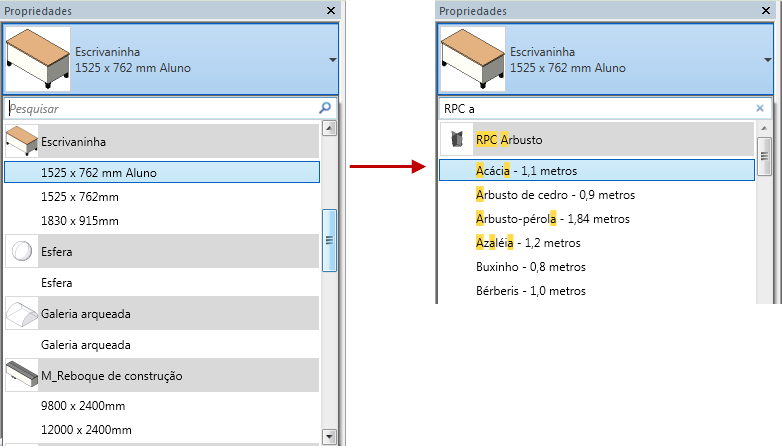 Revit para tornar mais fácil a seleção em uma longa lista de opções. Você pode pesquisar nas seguintes áreas funcionais: