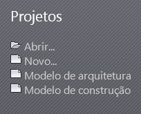 A janela Arquivos recentes pode listar até cinco modelos em Projetos. Um modelo de projeto fornece um ponto de início para um novo projeto, definindo configurações, estilos e informações básicas. Os modelos podem simplificar a configuração do projeto, padronizar a documentação do projeto e assegurar a aderência às normas do escritório.
