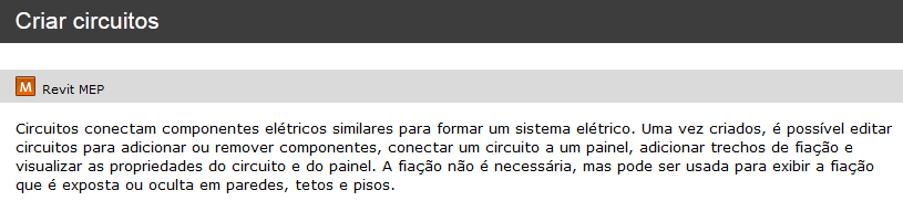 Neste exemplo, a legenda indica que todo o tópico somente se aplica ao Revit MEP e às funções relativas ao MEP do Autodesk Revit.