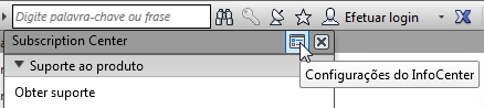 O InfoCenter consiste em um conjunto de ferramentas no lado direito da barra de título que permitem acessar diversas fontes de informações relacionadas aos produtos.