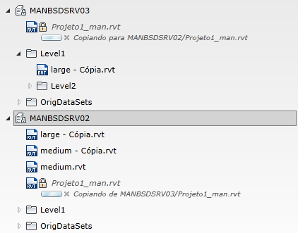 localizadas acima no controle em árvore, conforme necessário, para alterar a hierarquia de pastas e modelos para um host do Revit Server, ou para mover um modelo de um host para outro (mover pastas entre hosts não é suportado no momento). As alterações feitas são refletidas na estrutura na qual se navega usando as caixas de diálogo Abrir e Salvar do Revit.