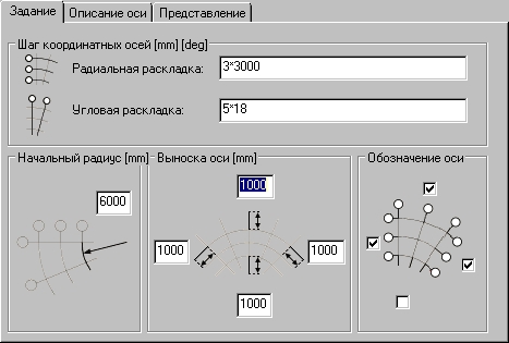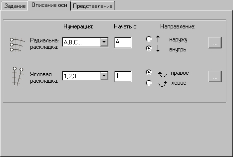 Диалоговое окно Координатые оси состоит из таких закладок.