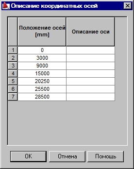 пользовательский – если выбран этот тип, то тогда доступна кнопка (…), при нажатии на кноторуюоткрывается диалоговое окно Описание координатных осей. Для определения описания проектных осей, указывают положение и описание каждой оси и нажимают на кнопку ОК.