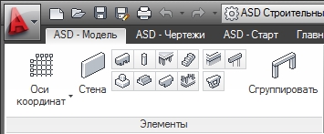 Лента автоматически показывает, когда создан или открыт чертеж при помощи рабочего пространства ASD Строительные чертежи. Можно отобразить ленту вручную одним из следующих способов: