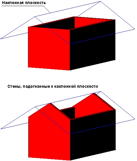 Пример стен, привязанных к наклонной плоскости, показан на рисунке ниже.