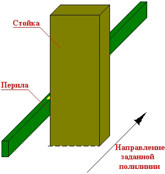 - Ось перильного профиля лежит на плоскости перильного ограждения.