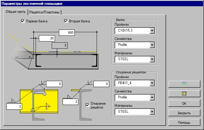 Диалоговое окно состоит из двух закладок: Общая часть и Решетки/Пластины.