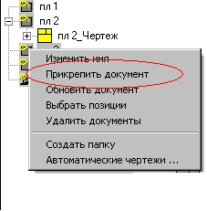 - После указания первой позиции с помощью курсора щелкают ПКМ и выбирают опцию Прикрепить документ из контекстного меню (см. рис. ниже).